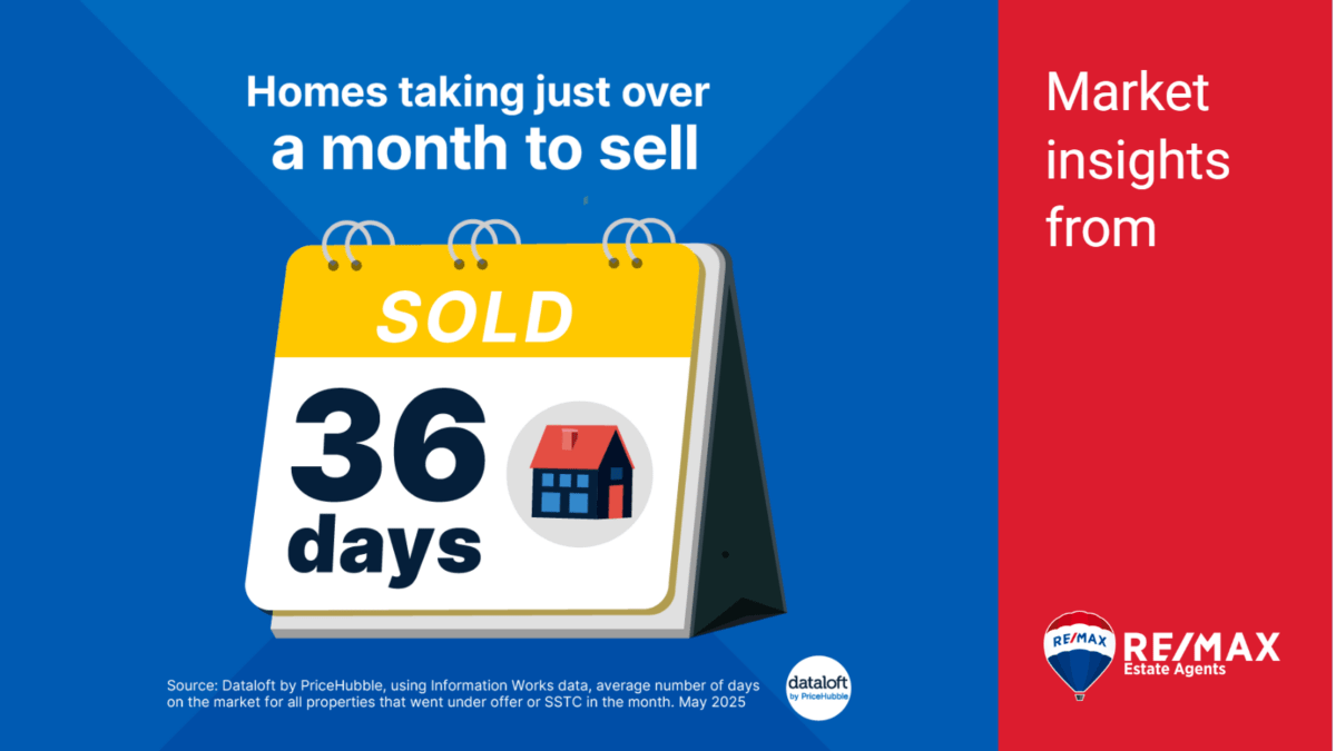 📊 Source: Dataloft by PriceHubble using Information Works data, average number of days on the market for all properties that went under offer or SSTC in the month.