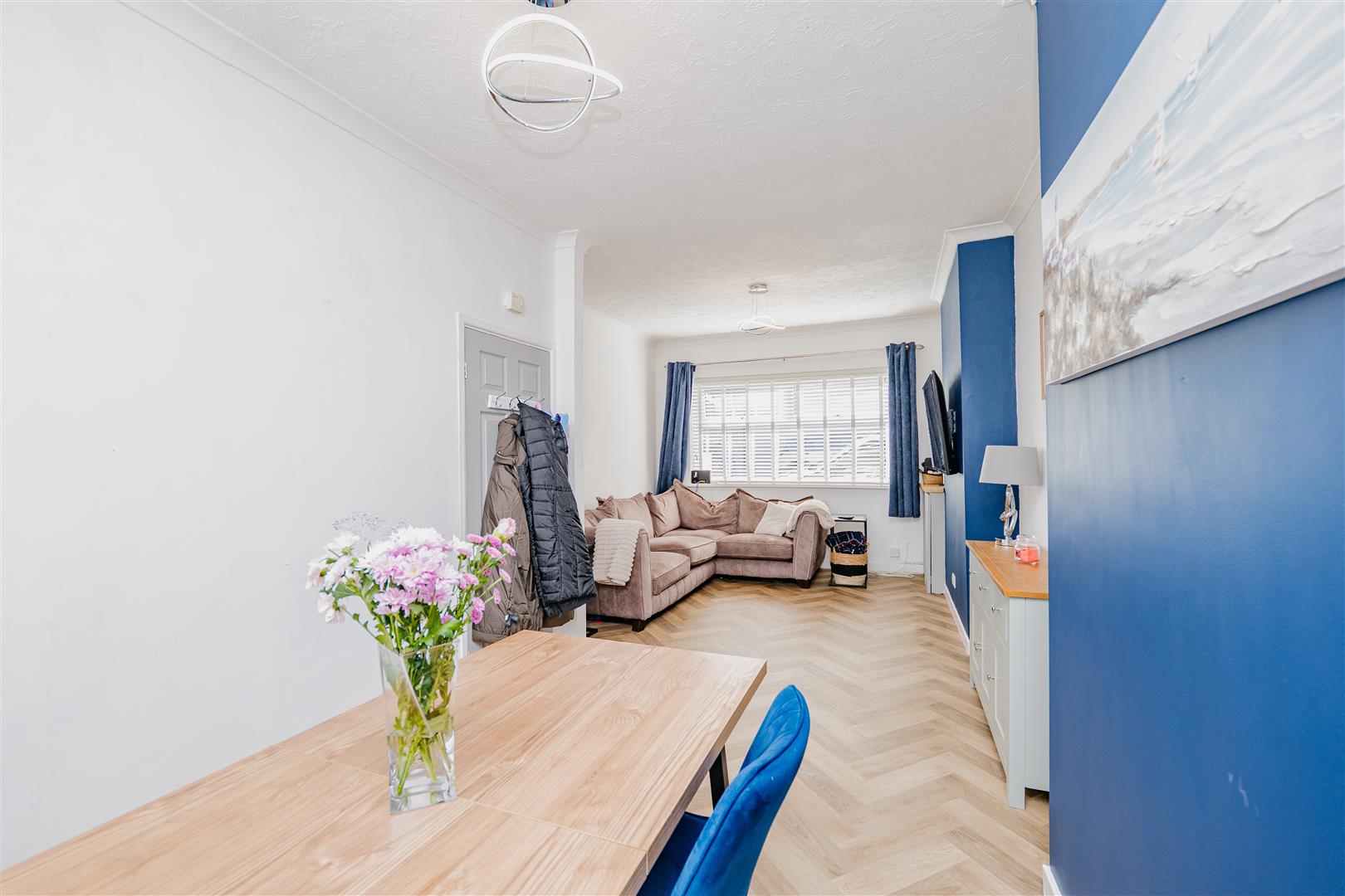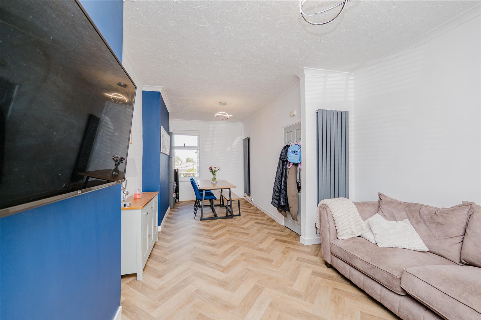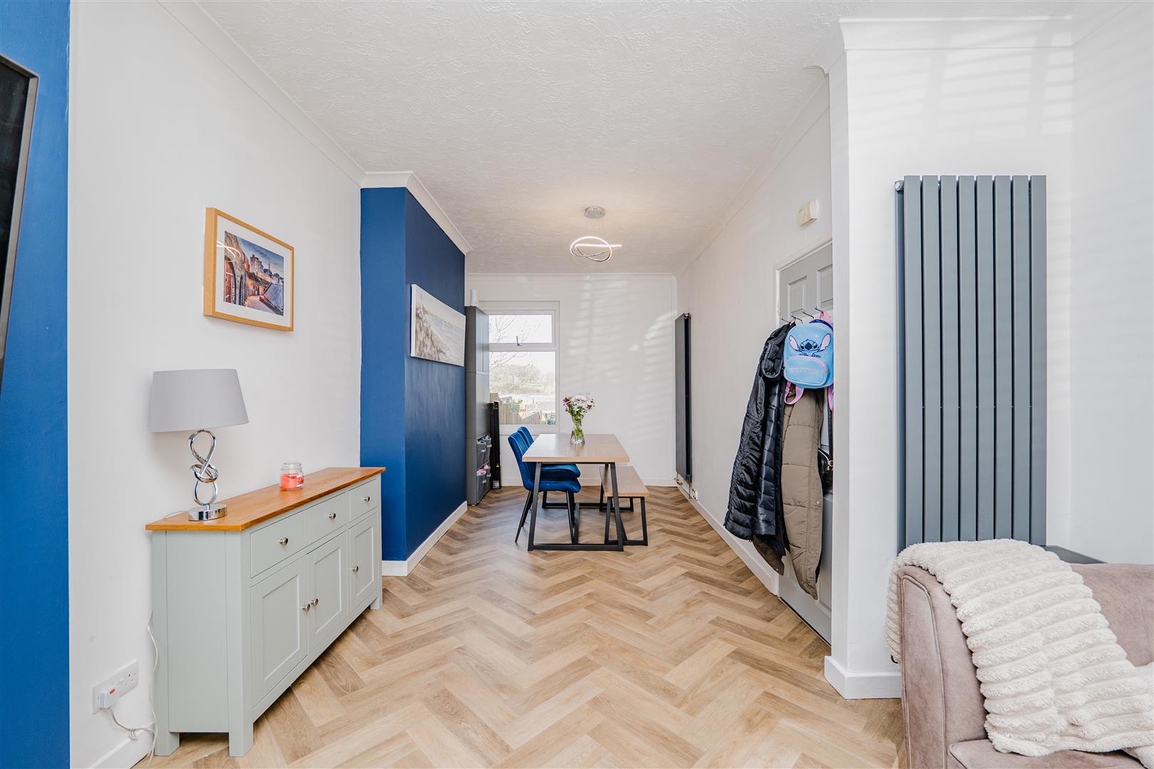 Set back from the pavement, this well-presented two-bedroom mid-terraced home on Charlotte Place, Barry, CF63 43E, benefits from a gated front garden, offering both privacy and kerb appeal. Upon entering, you are welcomed into a useful entrance porch that leads to the main hallway and provides a practical space for coats.The ground floor features a bright, contemporary open-plan living and dining area, finished with wood-effect flooring and crisp white walls, complemented by stylish blue feature walls. The space is enhanced by modern vertical grey radiators and an abundance of natural light, creating a warm yet modern atmosphere ideal for both relaxing and entertaining. From the hallway, you can access the kitchen, located at the rear of the property. The kitchen is fitted with light-coloured cupboards and wooden-effect worktops, offering ample storage and preparation space. A light tiled splashback runs throughout, adding a clean and cohesive finish, while a door provides direct access to the rear garden.