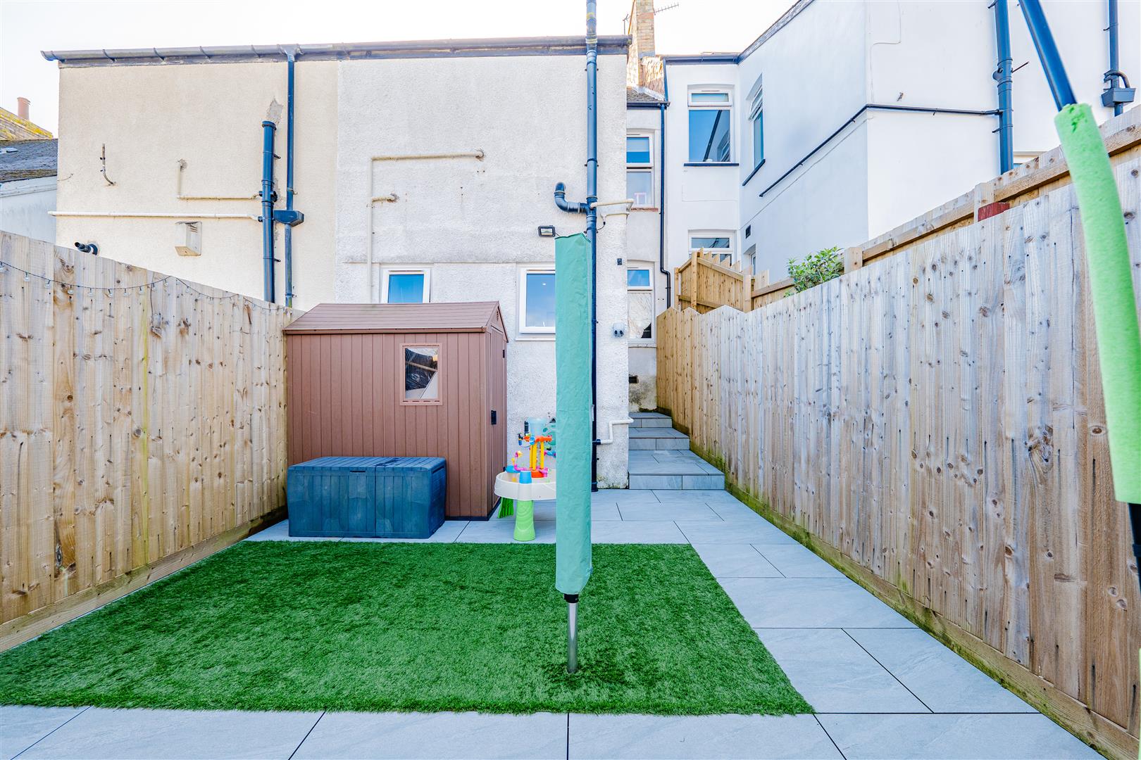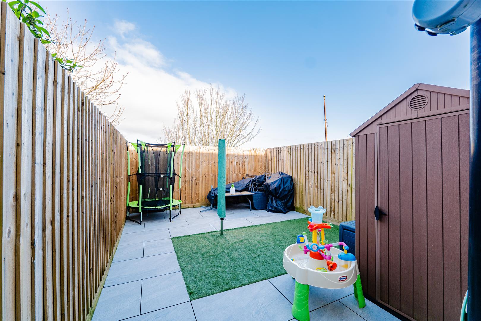 Externally, the rear garden has been designed with low maintenance in mind, featuring attractive grey tiling and an artificial grass area, perfect for a washing line. There is ample space for outdoor seating, making it a great spot for relaxing or entertaining, as well as room for a shed for additional storage.