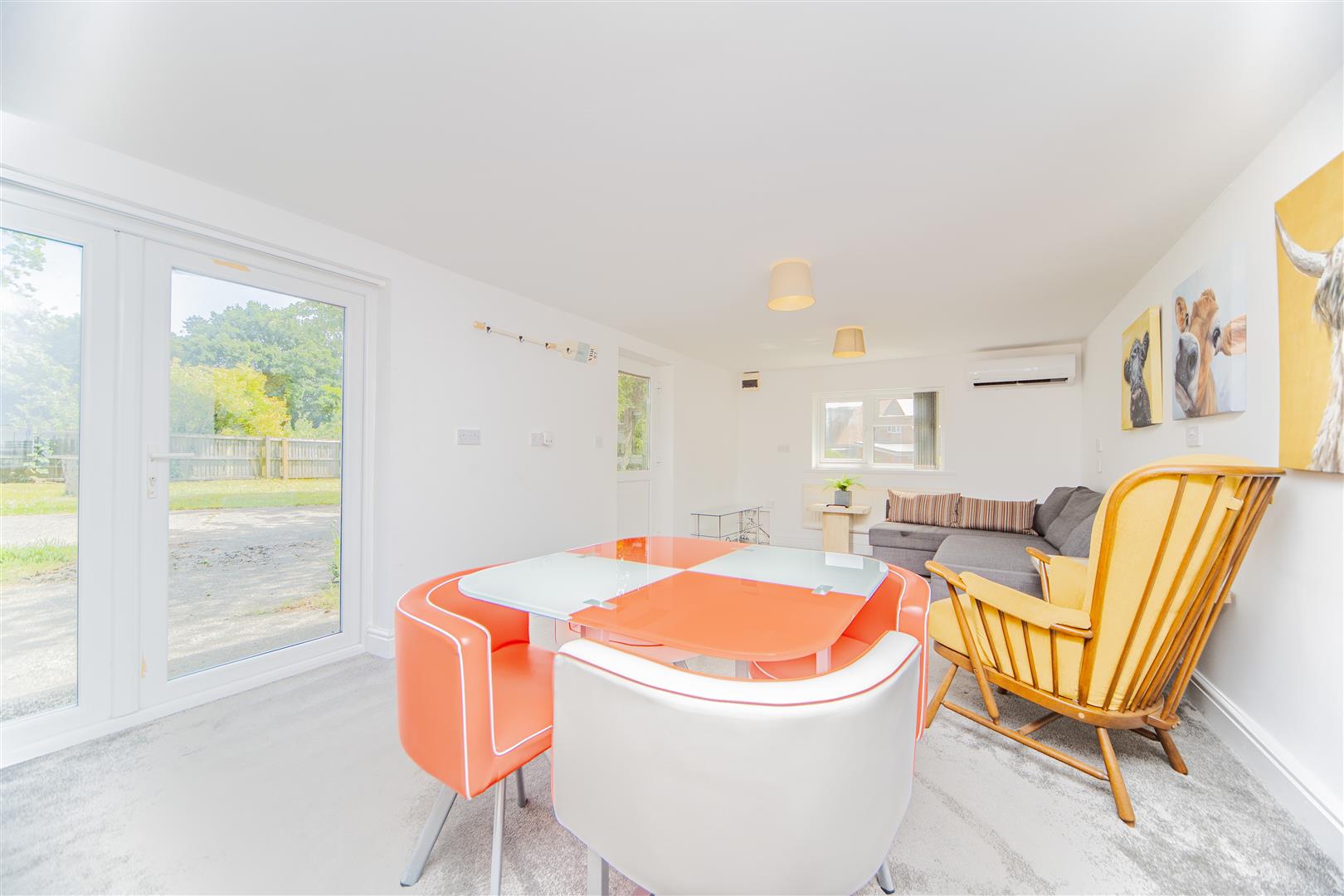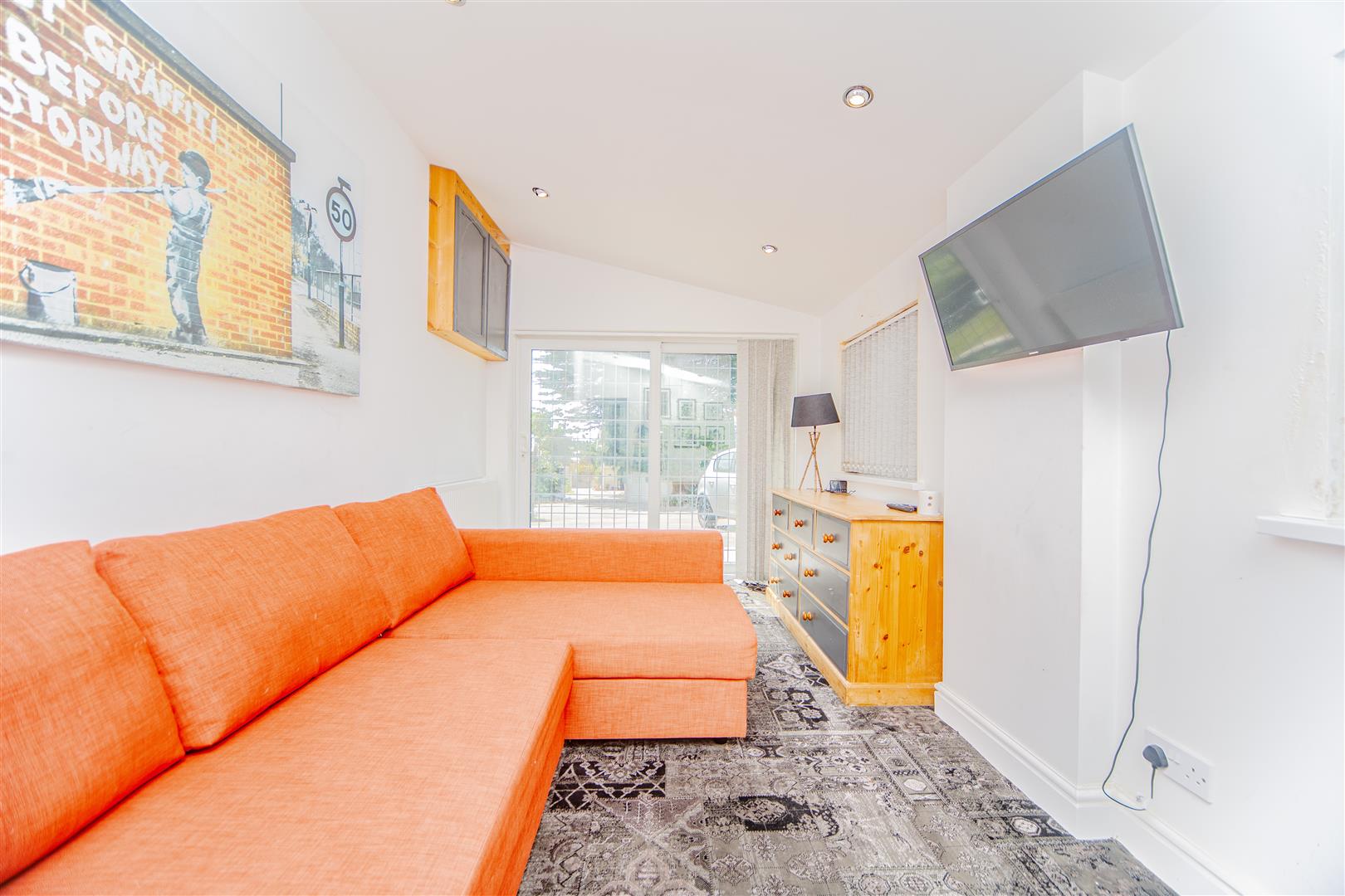 The second reception room is another generously sized and bright space, enhanced by large windows and a sliding door that leads out to the front garden, making it ideal as a second lounge, home office, or family room.
