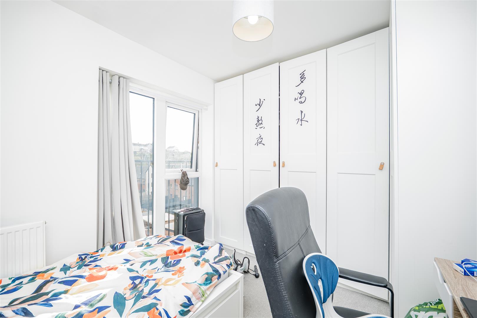 The apartment features two well-proportioned bedrooms, with the primary bedroom benefiting from a modern ensuite shower room finished with light-coloured tiles and flooring, creating a fresh and airy feel. The family bathroom complements the ensuite, offering a white suite with light tiles and flooring, maintaining the property’s clean and neutral aesthetic throughout.