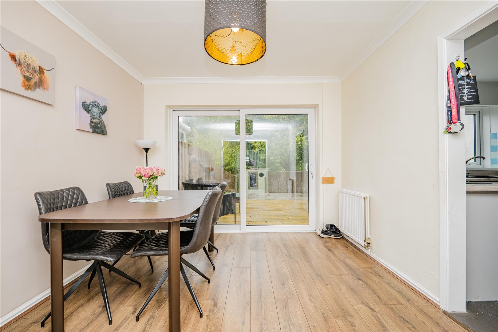 This well-presented three-bedroom semi-detached home is ideally situated in a sought-after residential area of Barry, offering generous living space, modern interiors, and a large rear garden perfect for family living and entertaining. Its convenient location provides easy access to local amenities, schools, and transport links, ensuring a comfortable and connected lifestyle.The ground floor features a welcoming entrance hall that leads to a generously spacious living room with a bay window, a separate dining room with sliding doors opening onto the rear garden, and a modern, fitted kitchen with ample storage and worktop space. Two convenient storage cupboards are also located on the ground floor, providing ample space for all your storage needs.
