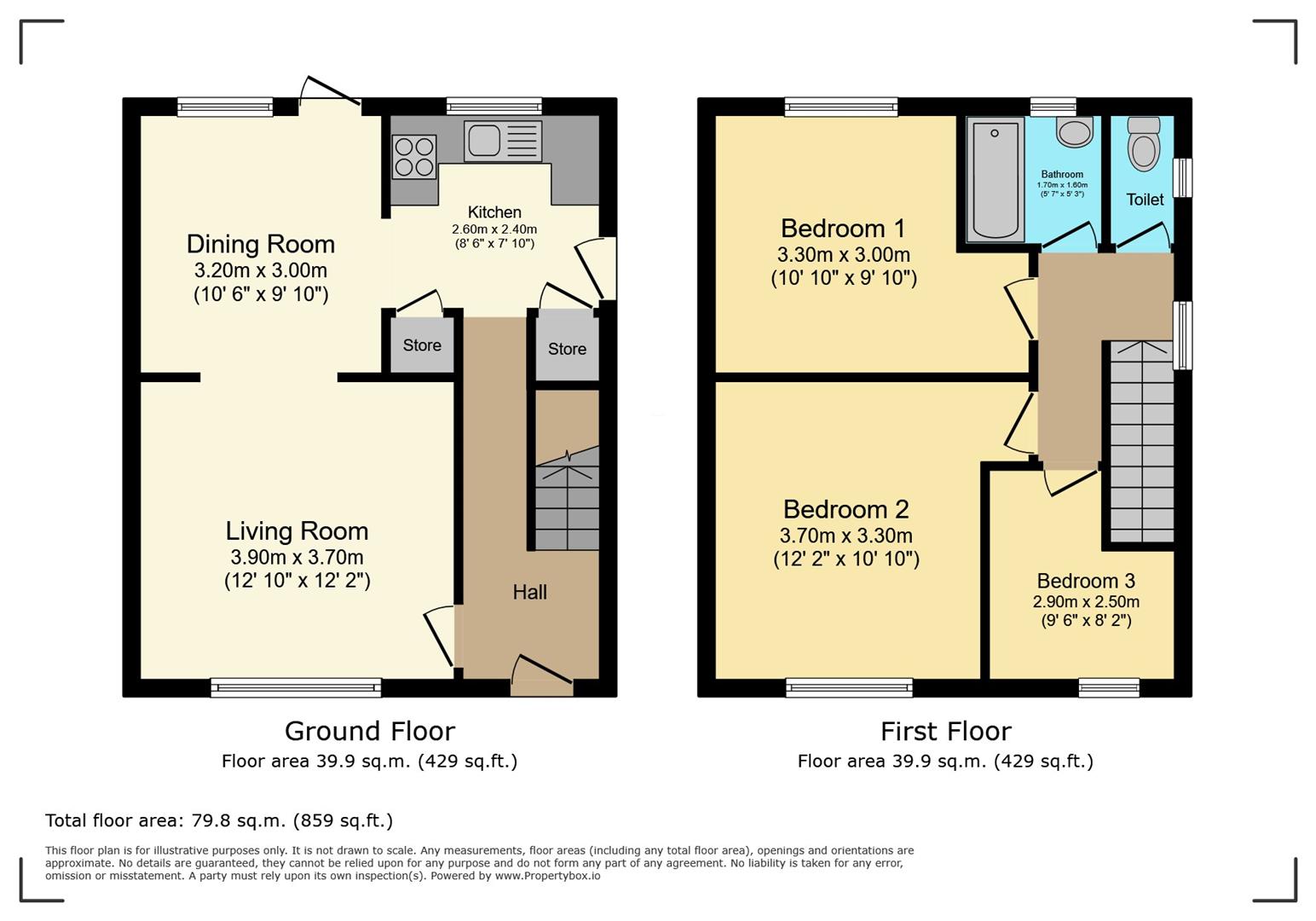 Upstairs, the property features three well-proportioned bedrooms, comprising two doubles and a spacious single. The family bathroom and a separate WC complete the first-floor layout.
