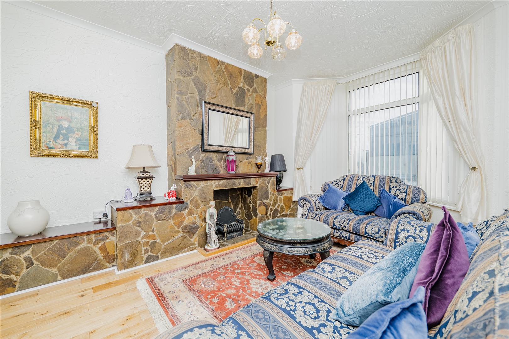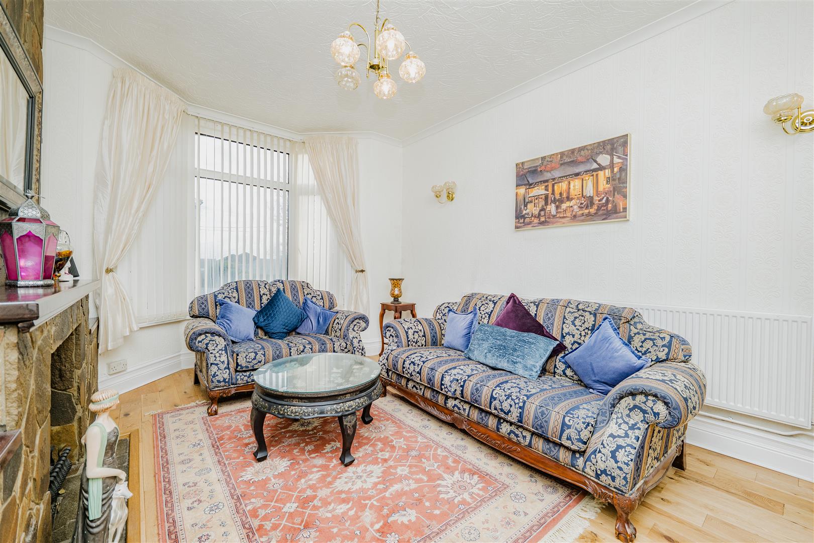 The property is entered via an entrance porch, which leads through to a welcoming hallway with a useful storage cupboard. At the front of the home is a spacious reception room with a large bay window that floods the room with natural light and an attractive fireplace that adds character.