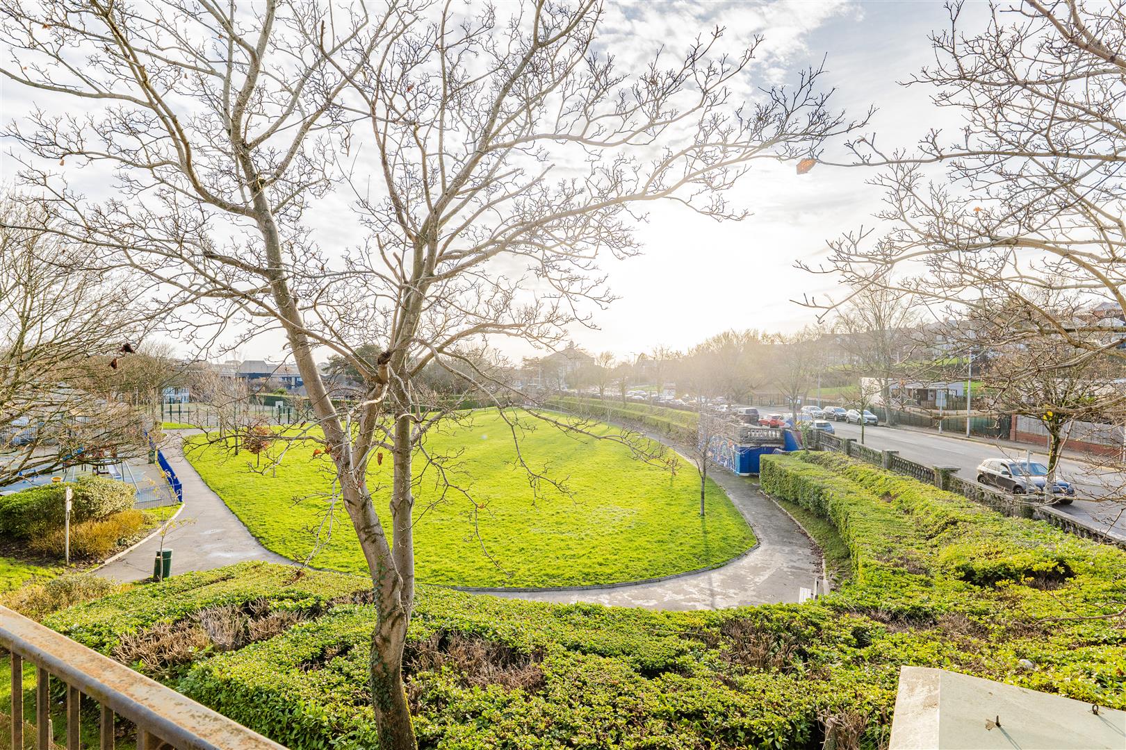 - Balcony overlooking green space