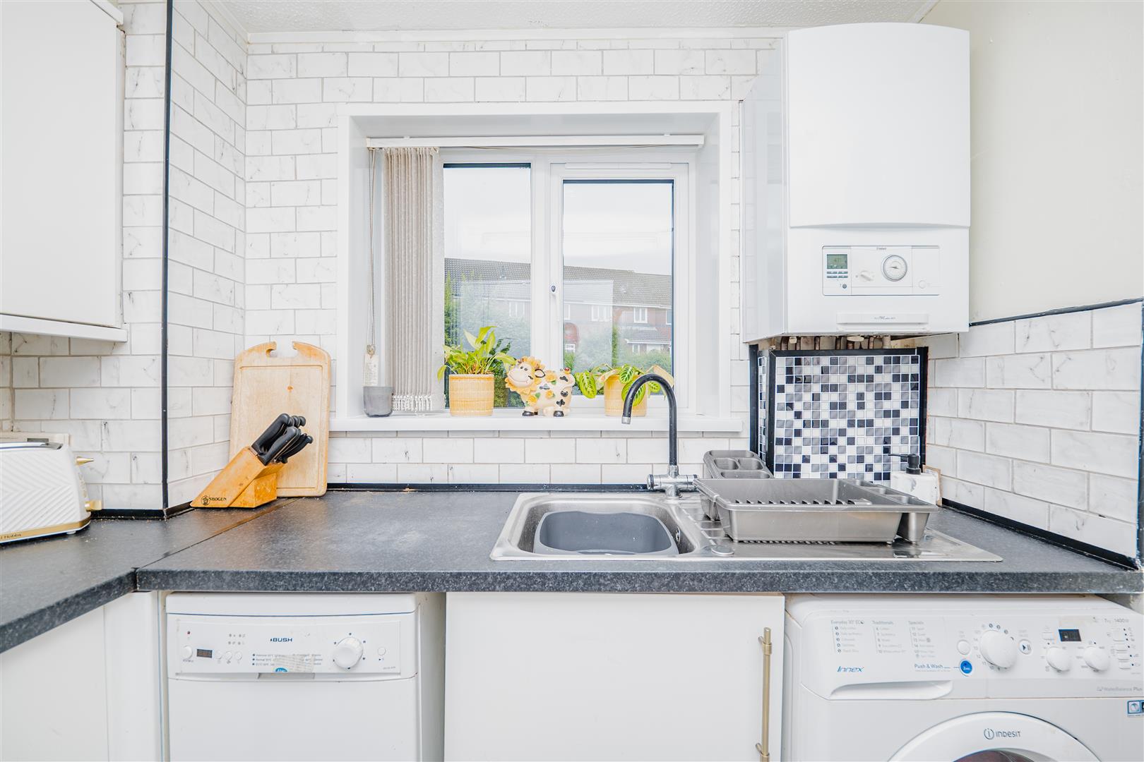 On the ground floor, the home comprises a welcoming entrance leading into a spacious open-plan living and dining area, creating a bright and versatile space ideal for both relaxing and entertaining. French doors open directly onto the rear garden, allowing for a seamless indoor-outdoor flow. A separate, modern fitted kitchen provides ample storage and workspace, making it both practical and functional.