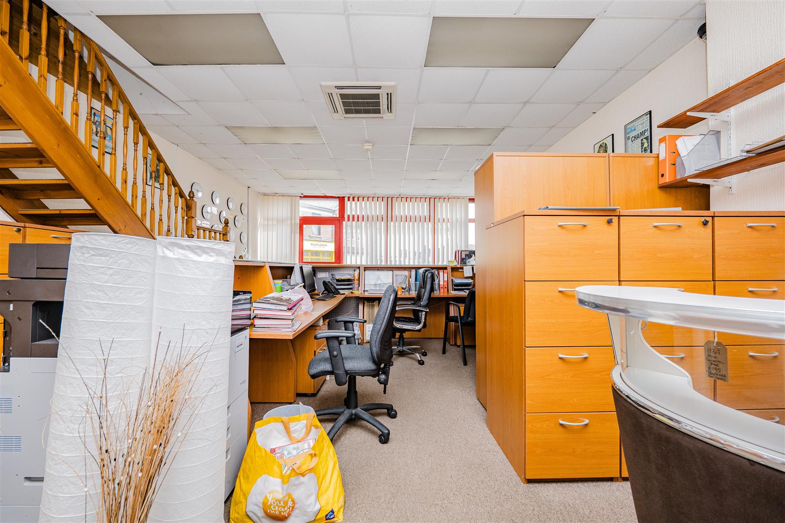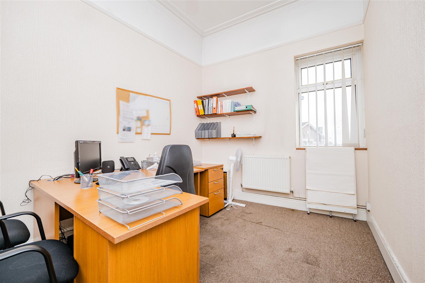 The first floor offers four well-proportioned rooms, suitable for use as private offices, meeting rooms, or storage. This level also benefits from a shower room with a WC and sink, adding convenience for both staff and clients.