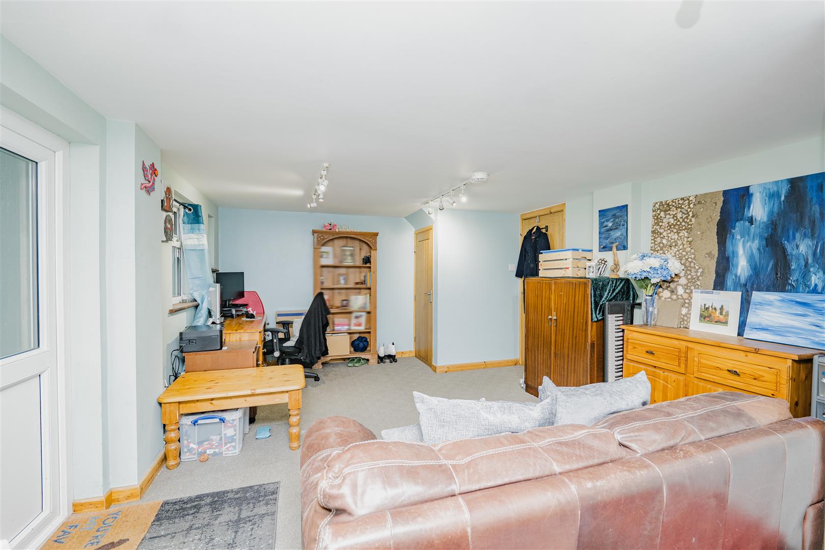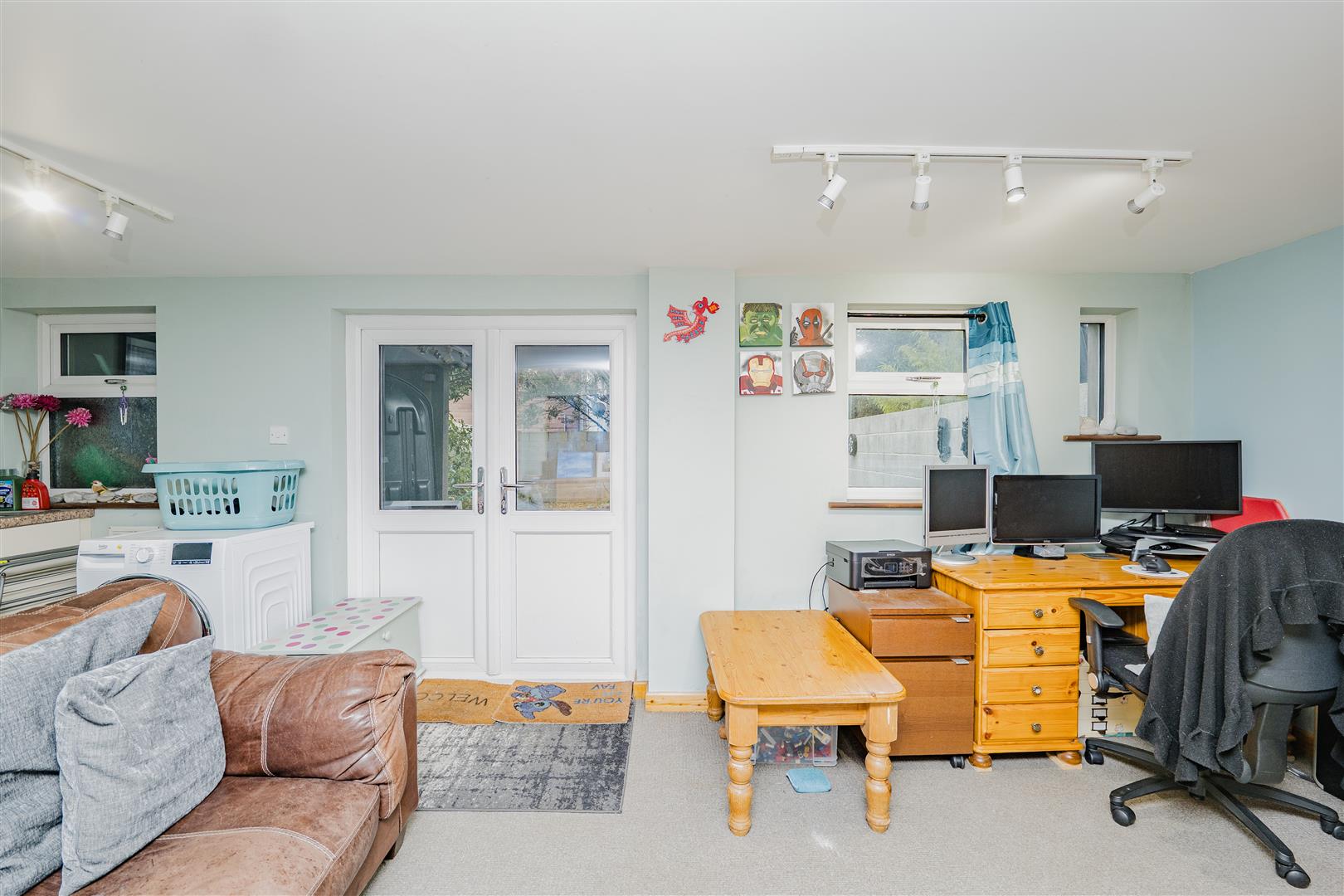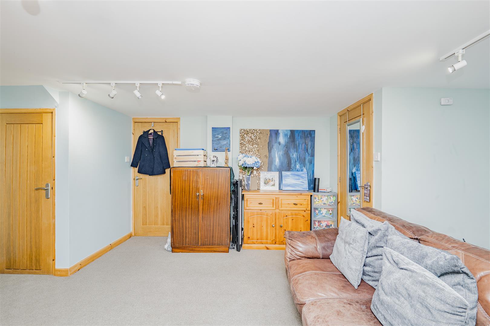 The basement level is currently utilised as an additional sitting room and office area, with a further log burner. This versatile space also includes room for appliances and a sink area, making it practical as well as comfortable. In addition, there is a separate W.C. and a further storage cupboard. Patio doors provide direct access to the rear garden, enhancing the indoor-outdoor flow.