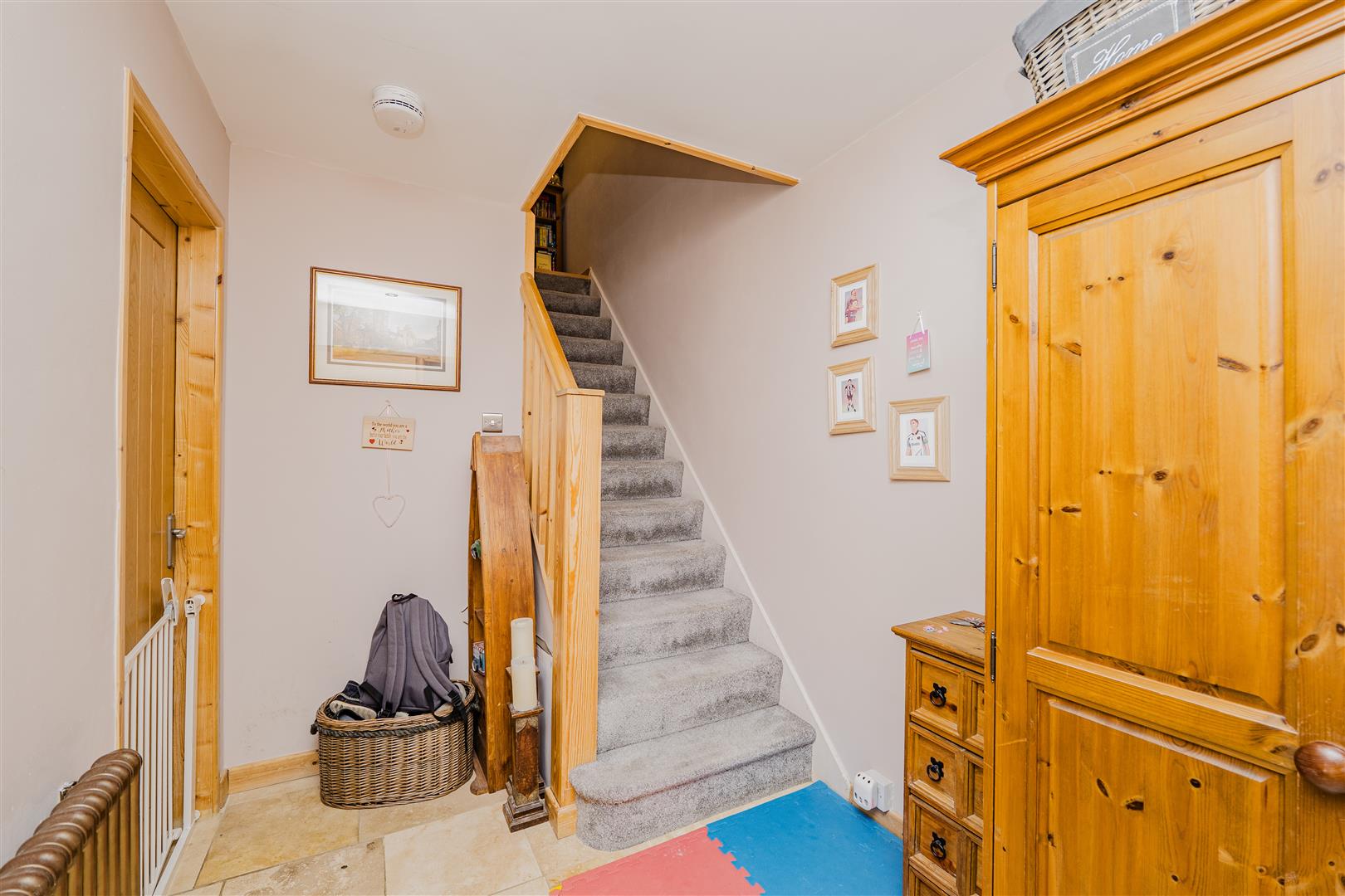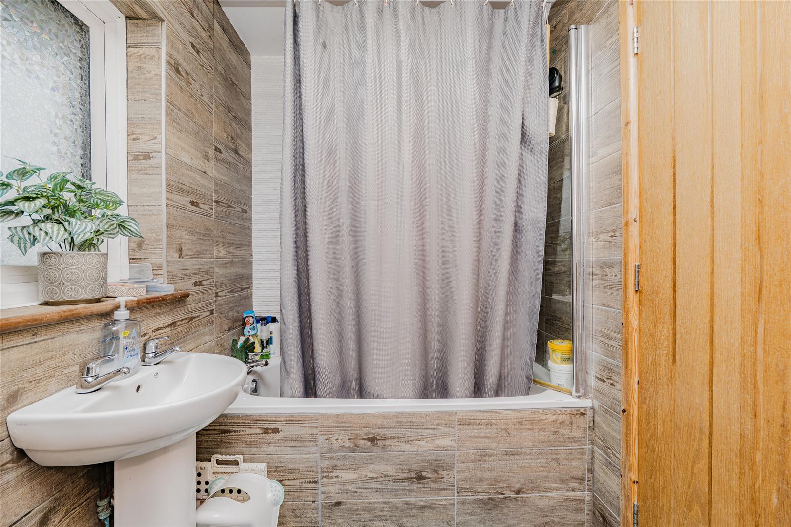 The first floor comprises three well-proportioned bedrooms, one of which benefits from fitted wardrobe space. The family bathroom is fitted with a small bath and overhead shower, a white WC and a wash hand basin, and is finished with attractive wooden panel-effect walls from floor to ceiling.