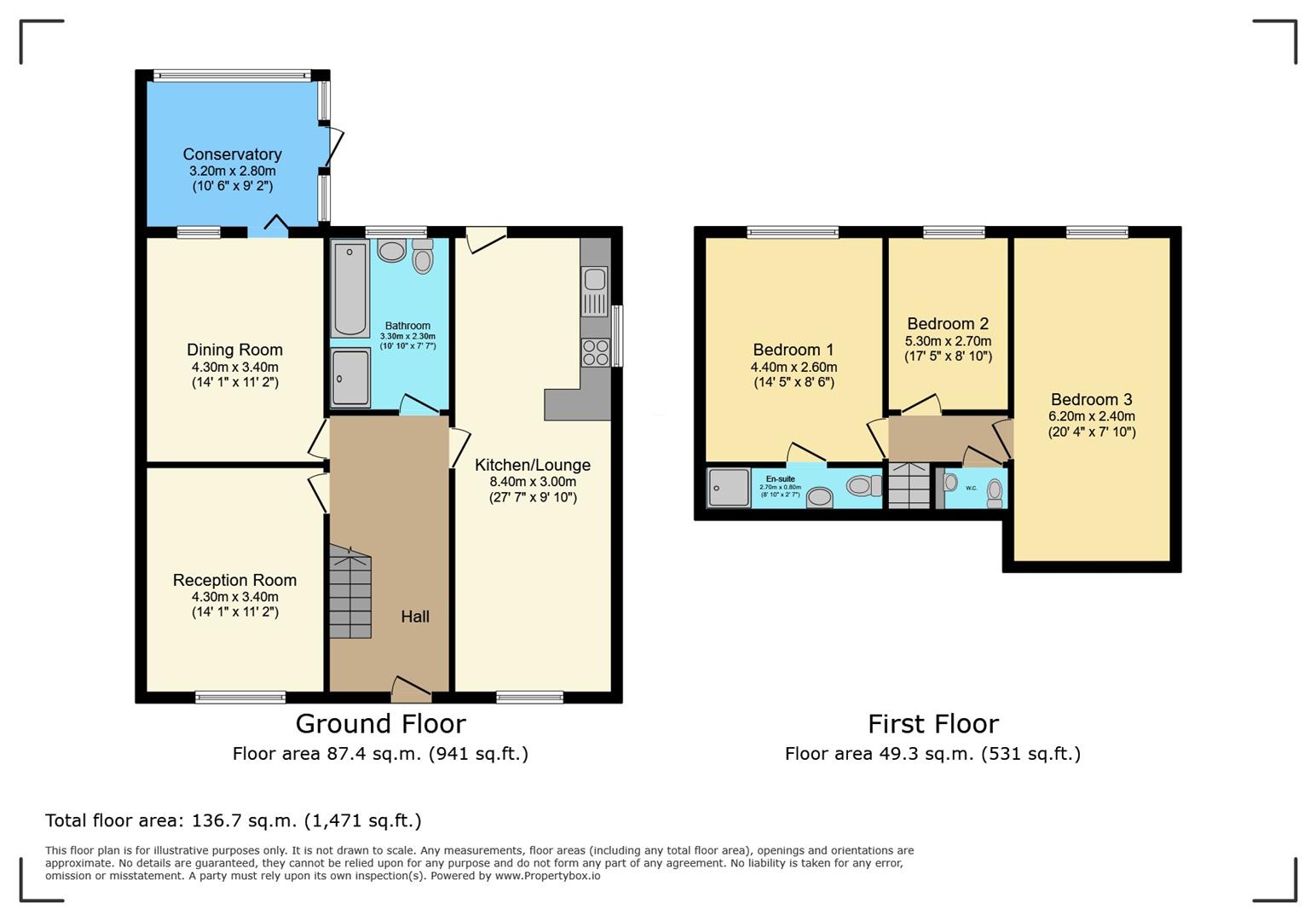 On the first floor, the property offers three well-proportioned bedrooms, including a spacious principal bedroom with an en-suite, plus an additional WC for convenience.