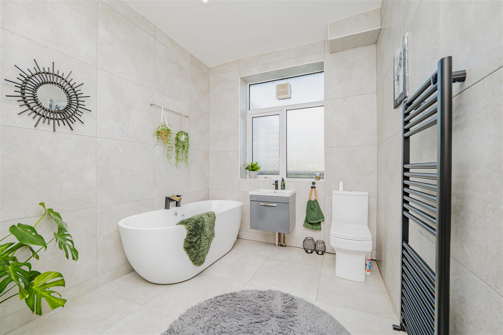 The conservatory overlooks the rear garden and provides an additional reception space filled with natural light, seamlessly connecting indoor and outdoor living. A contemporary family bathroom completes the ground floor.