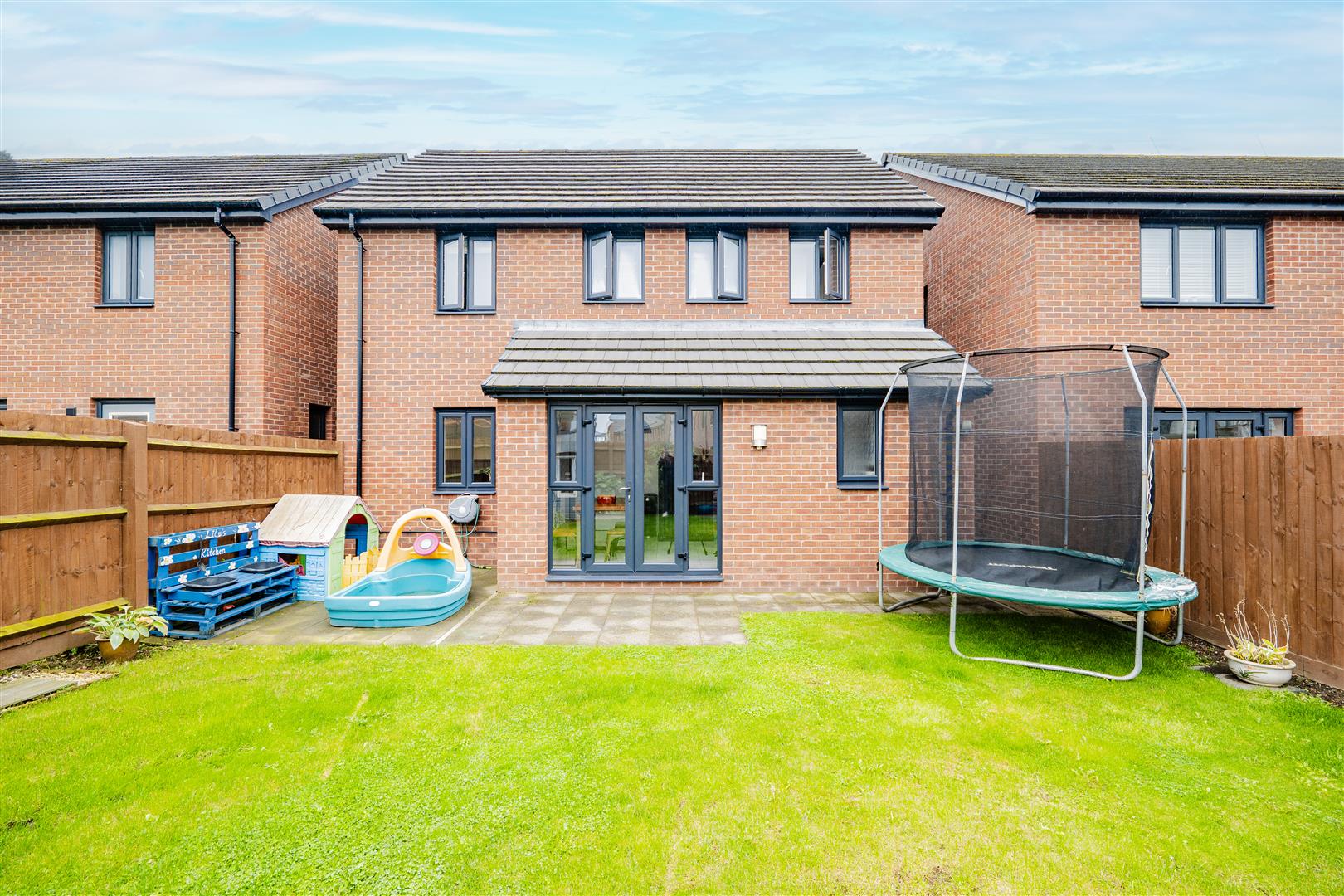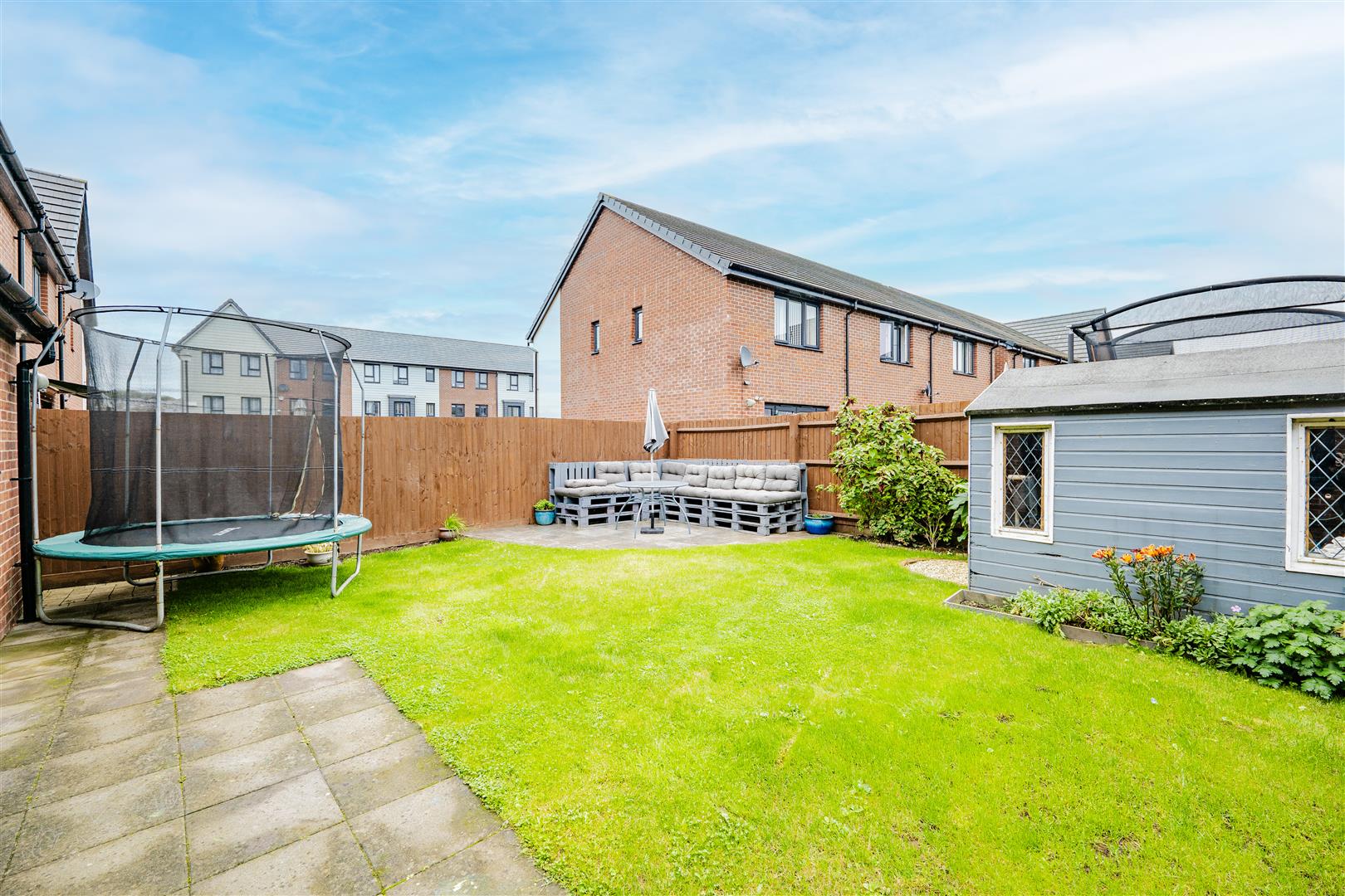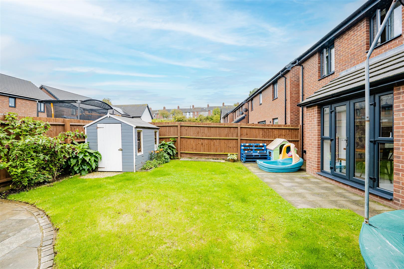 Externally, the property enjoys a generous rear garden, mainly laid to lawn with a patio seating area, perfect for children to play and summer entertaining. To the front, there is a driveway providing ample off-road parking holding up to three cars, along with an integrated garage for additional storage or parking.