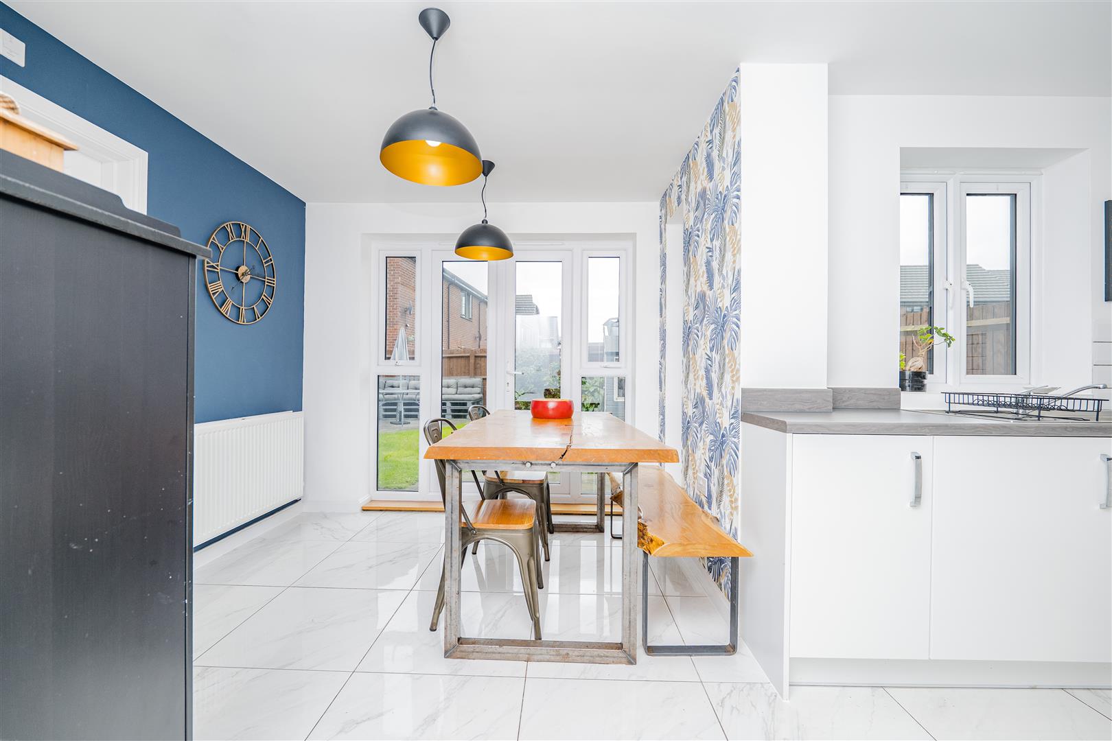 REMAX Estate Agents are delighted to present this beautifully presented three-bedroom detached family home, situated on the highly sought-after modern development at Barry Island. This property, designed with a strikingly modern aesthetic, offers a perfect balance of style, practicality, and comfort, making it an ideal choice for families or those looking for a move-in-ready home close to the coast.The ground floor welcomes you with a bright entrance hall that leads to a spacious living room featuring a large window, creating a warm and inviting space to relax. To the rear, the modern open-plan kitchen/diner boasts sleek white gloss units, integrated appliances, and patio doors opening onto the garden, ideal for family dining and entertaining. A separate utility room and convenient ground-floor W.C. complete the downstairs layout. The property also features energy-efficient windows and appliances, ensuring a comfortable living environment while reducing energy costs.