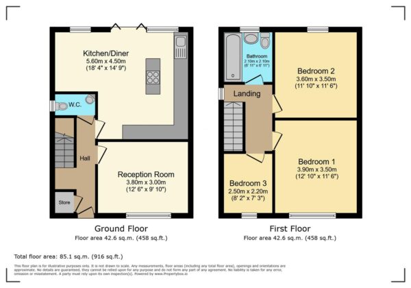 The first floor offers three well-proportioned bedrooms, all finished with grey carpets and light, neutral décor. Completing the accommodation is the modern family bathroom, fitted with marble-effect floor and wall tiles, a bath with an overhead shower, a WC and a wash-hand basin.