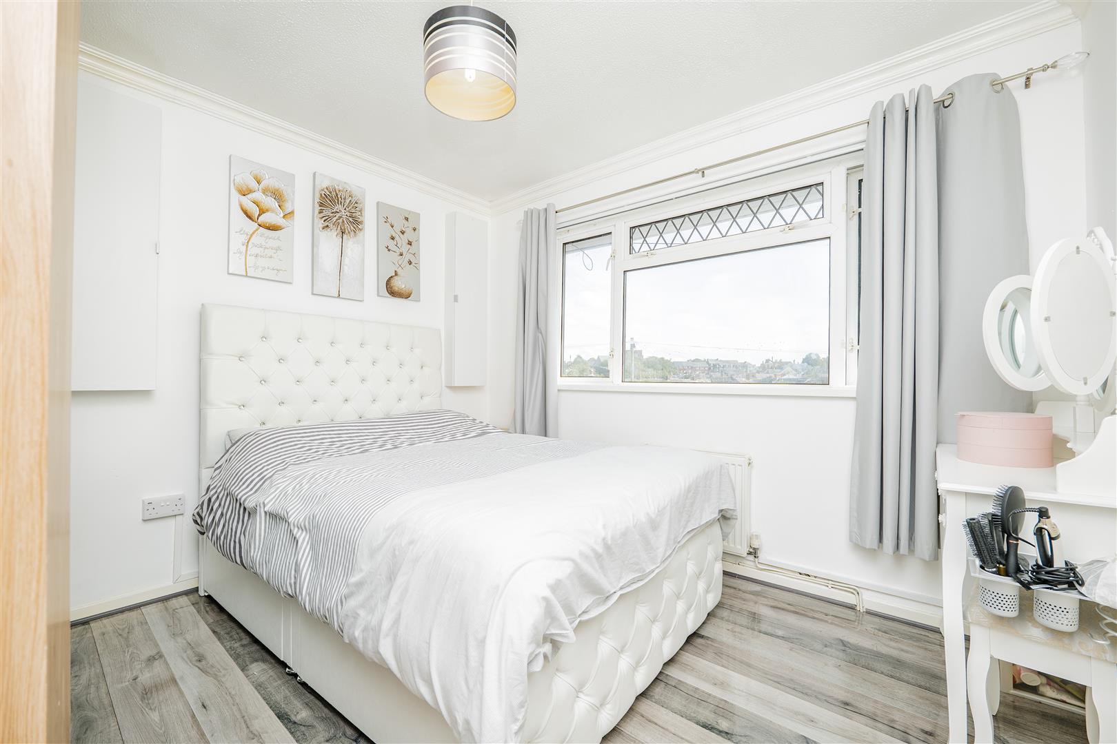 - Grey wood-effect flooring upstairs