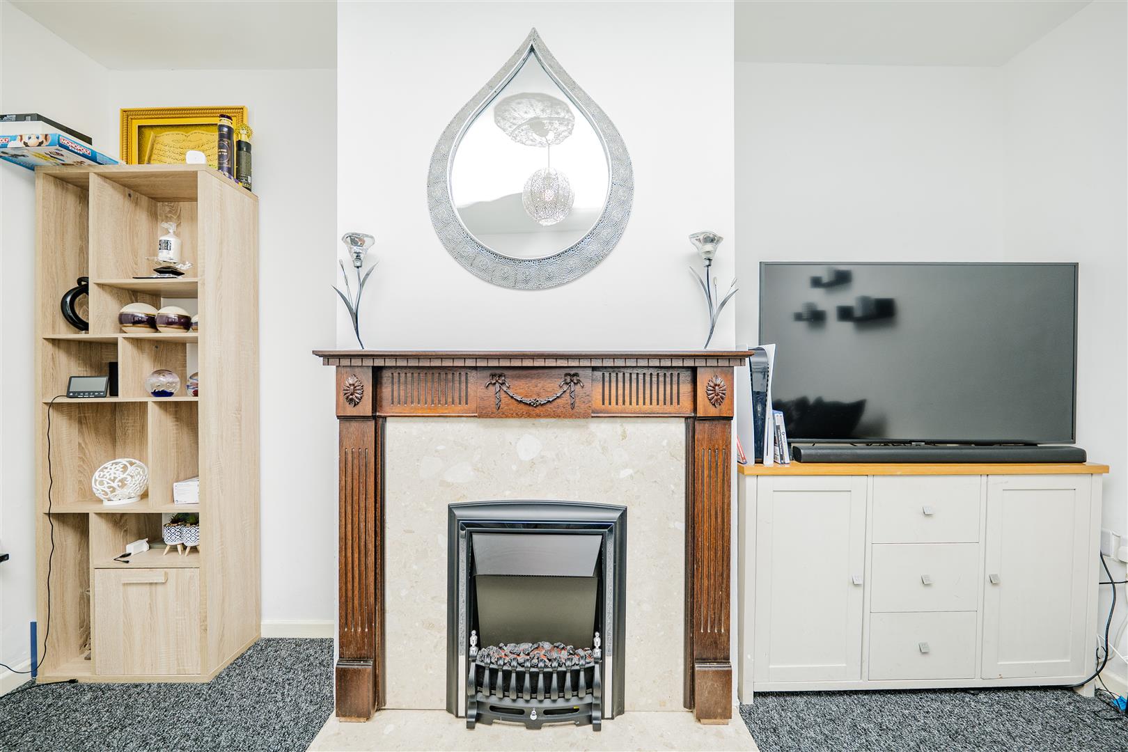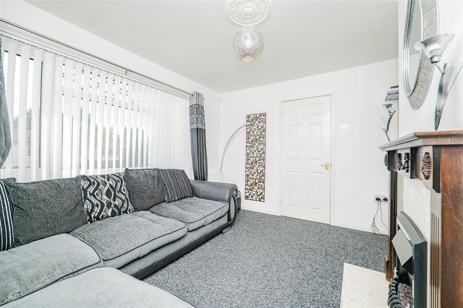 Located in Westbury Close, Barry, this three-bedroom end-of-terraced home offers generous living accommodation and off-street parking for multiple vehicles.The property is entered via a welcoming entrance porch, leading into the first reception room, currently used as a dining room. This is a spacious area with fresh white walls and grey carpet, ideal for family dining or entertaining. From here, you step into the second reception room, a bright and spacious living room featuring the same stylish decor, complemented by a fireplace feature and a large front window that fills the room with natural light.